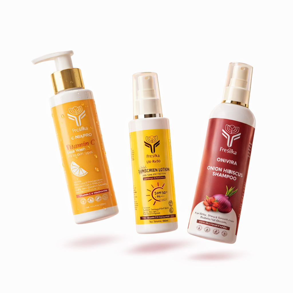 Our products offer expert botanical care, blending natural extracts with proven active ingredients like Niacinamide, Vitamin C, and physical UV blockers to protect, hydrate, and brighten your skin and hair.