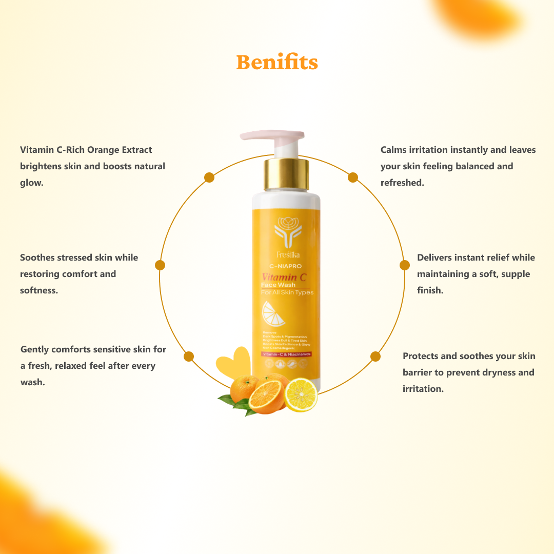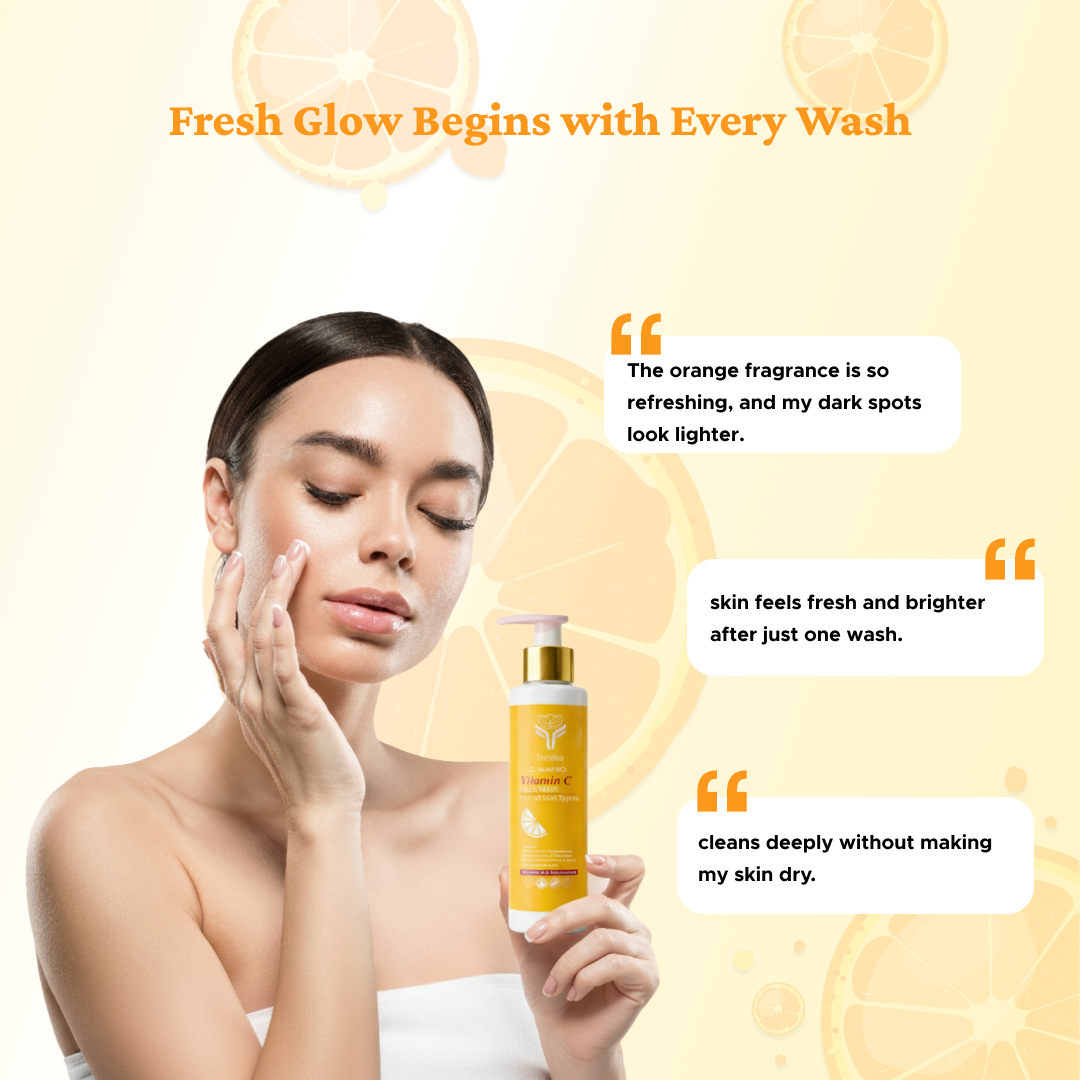 A gentle face wash with Vitamin C that brightens, refreshes, and removes impurities while keeping skin hydrated and glowing.