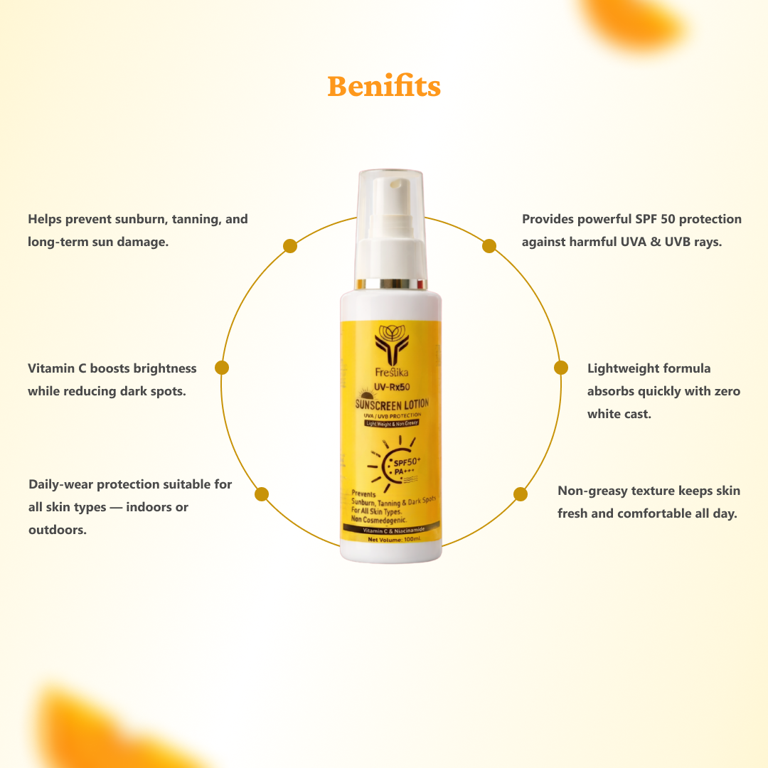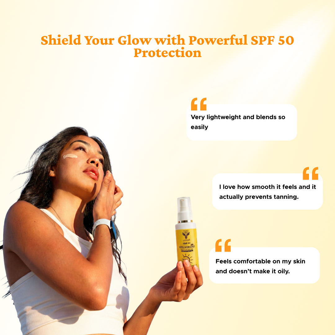 High SPF 50 sunscreen that protects your skin from harmful UV rays, preventing sunburn, tanning, and premature aging.