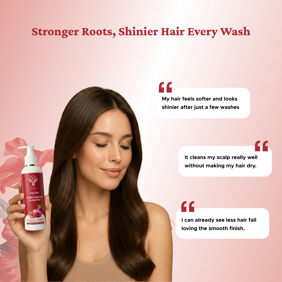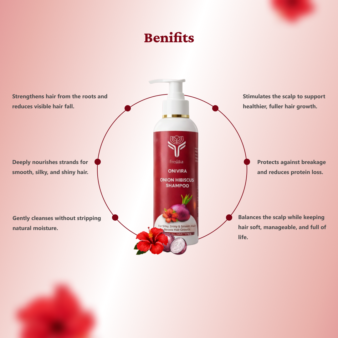 A nourishing shampoo with onion and hibiscus extracts that strengthens hair, adds shine, and supports healthy scalp care.