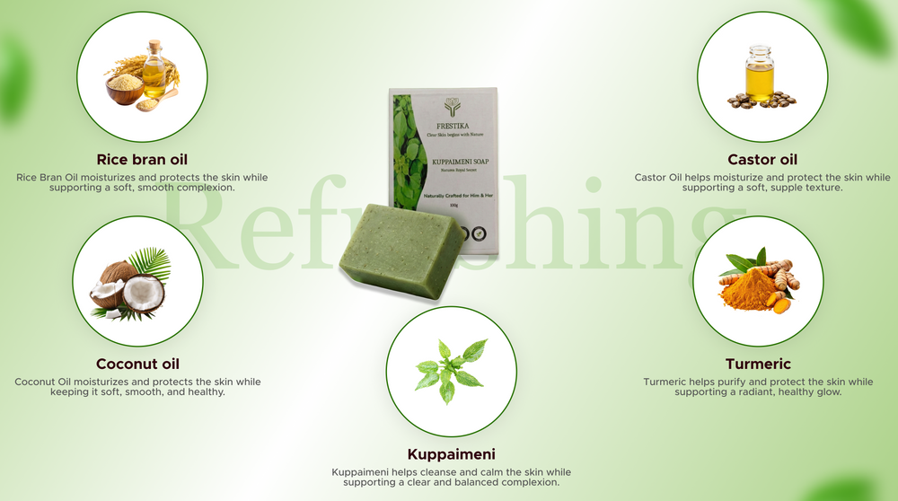 Experience the Healing Touch of Frestika Kuppaimeni Soap - a powerful soap designed for soothing and healing your skin naturally.