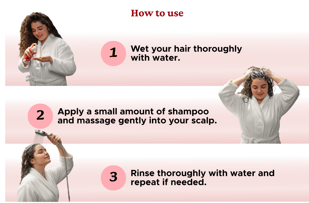 The shampoo is formulated with Onion Oil and Blackseed Oil, which work together to stimulate the scalp, improve blood circulation, strengthen hair roots, and reduce hair fall.